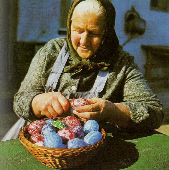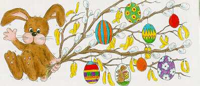 cut twigs from the garden are decorated with beautiful eggs and put into the living room as an Easter bouquet. Family members